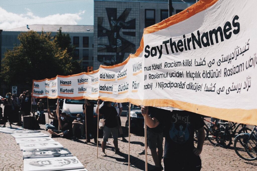 Mehr als 700 Menschen kamen am 19. Februar 2021 zur Kundgebung, um der Ermordeten in Hanau vor einem Jahr zu gedenken